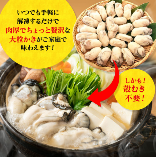 まれにむき身にかき殻等が付いている事がありますので、取り除いてお召し上がりください。