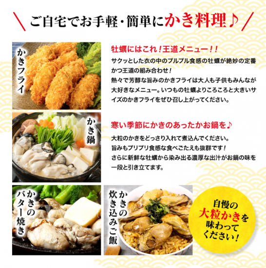 鍋やシチュー、フライなどのかき料理はいかがでしょう。